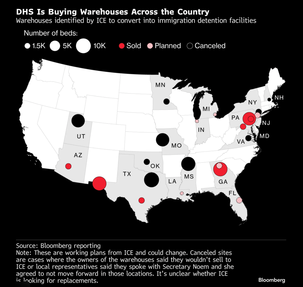 | Upper Bern Township Warehouse Facility | Berks County, Pennsylvania | Estimated 1,000–1,500 detainees (processing) | Warehouse purchased Feb 2026 |